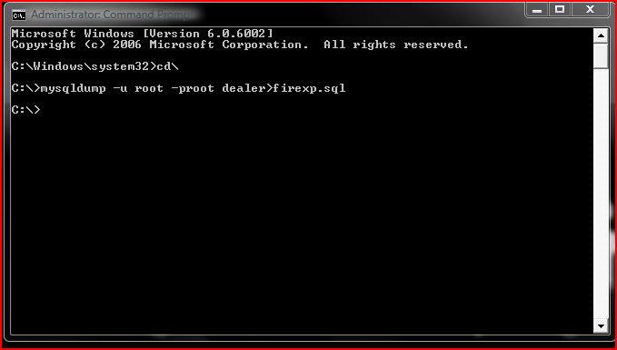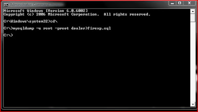 1.Copy the backup.sql file that you created to c:\( you can copy to any location.path has to provided if you use a different location)